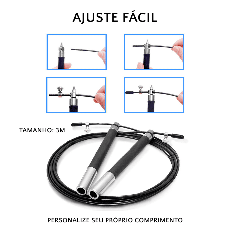 Produto: CORDA DE PULAR CROSS COM CABO DE ALUMÍNIO – AJUSTÁVEL – PRETO – PEDEMI STORE